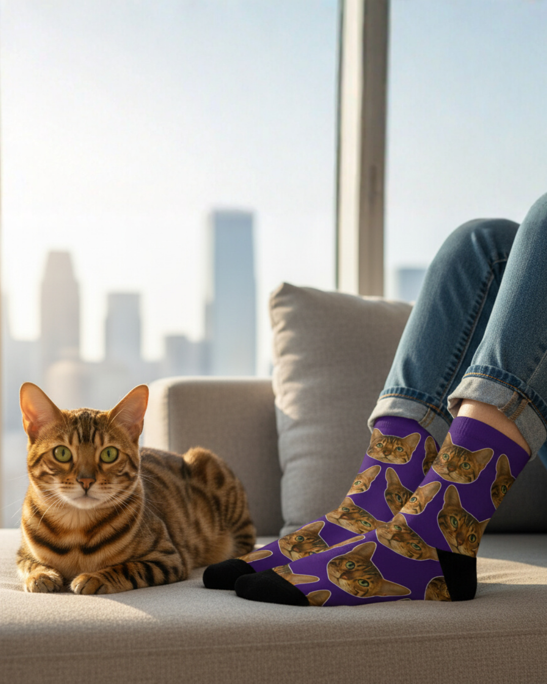 Sube la imagen y eliminaremos el fondo automáticamente. Elige el color y el diseño del fondo de tus calcetines.